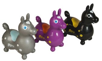 Inflatable 'Rody Horse' Children's Rocking Horse: Color is Silver | Baby Musical Toys | Everybody loves Rody. Toddlers love to bounce on it and parents love the cool design and hip colors. The Italian made Rody horse is one of the most entertaining toys we have ever seen. Rody has been a big hit with children in Europe and Japan and is now available in North America! The Rocking Rody horse helps children learn balancing and coordination while hopping around having a great time. It's made of super strong, latex-free vinyl, inflates with a hand or foot pump (not included) according to size and weight of child. Maximum inflated height to "saddle" is 12". Pump is not included. : Baby Musical Toys